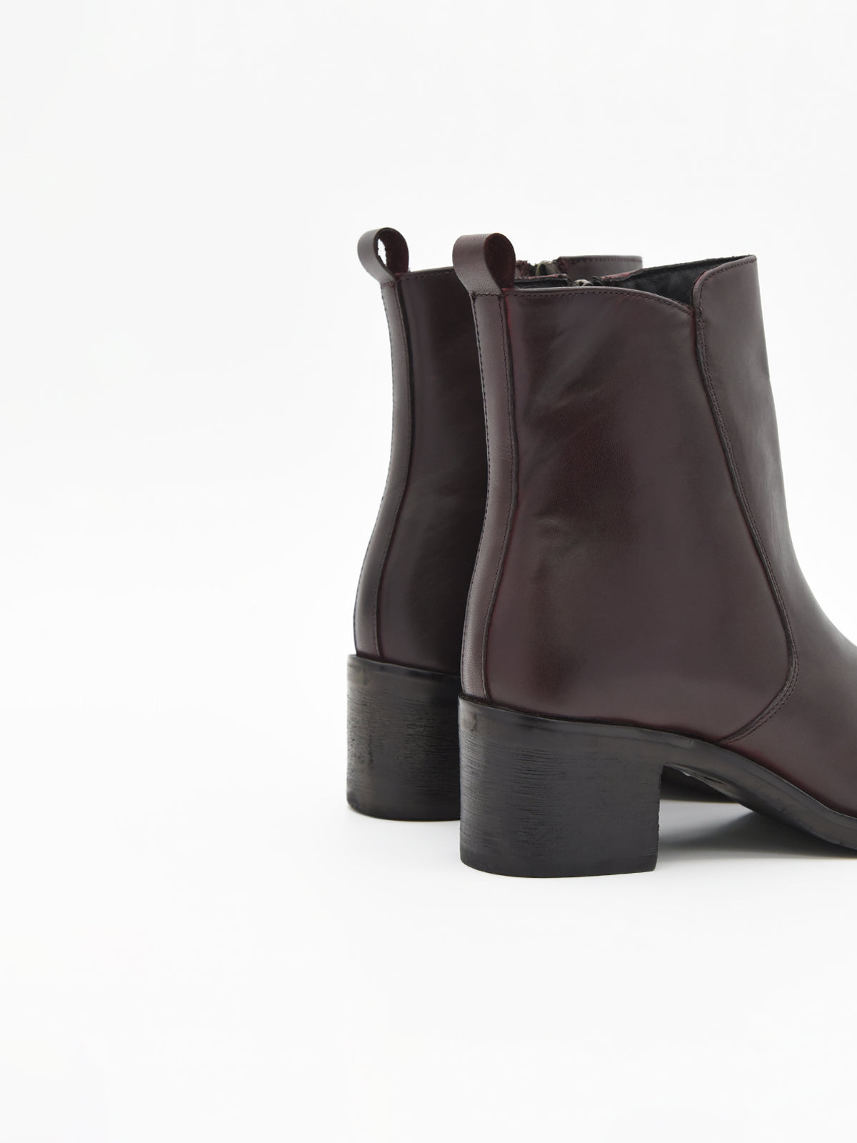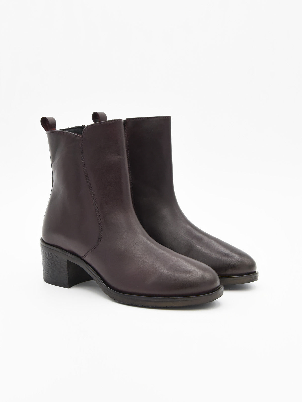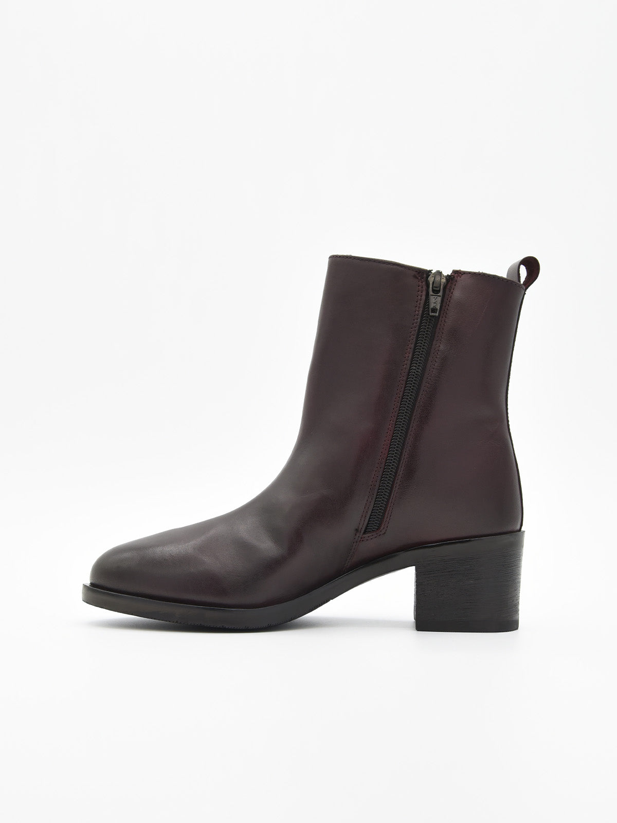 Los botines de piel burdeos que tu armario necesita esta temporada. Con diseño atemporal y minimalista, incorporan una cremallera lateral que facilita el calce, un tacón medio cuadrado que estiliza sin renunciar a la comodidad, y un acabado en piel auténtica que garantiza durabilidad y sofisticación.